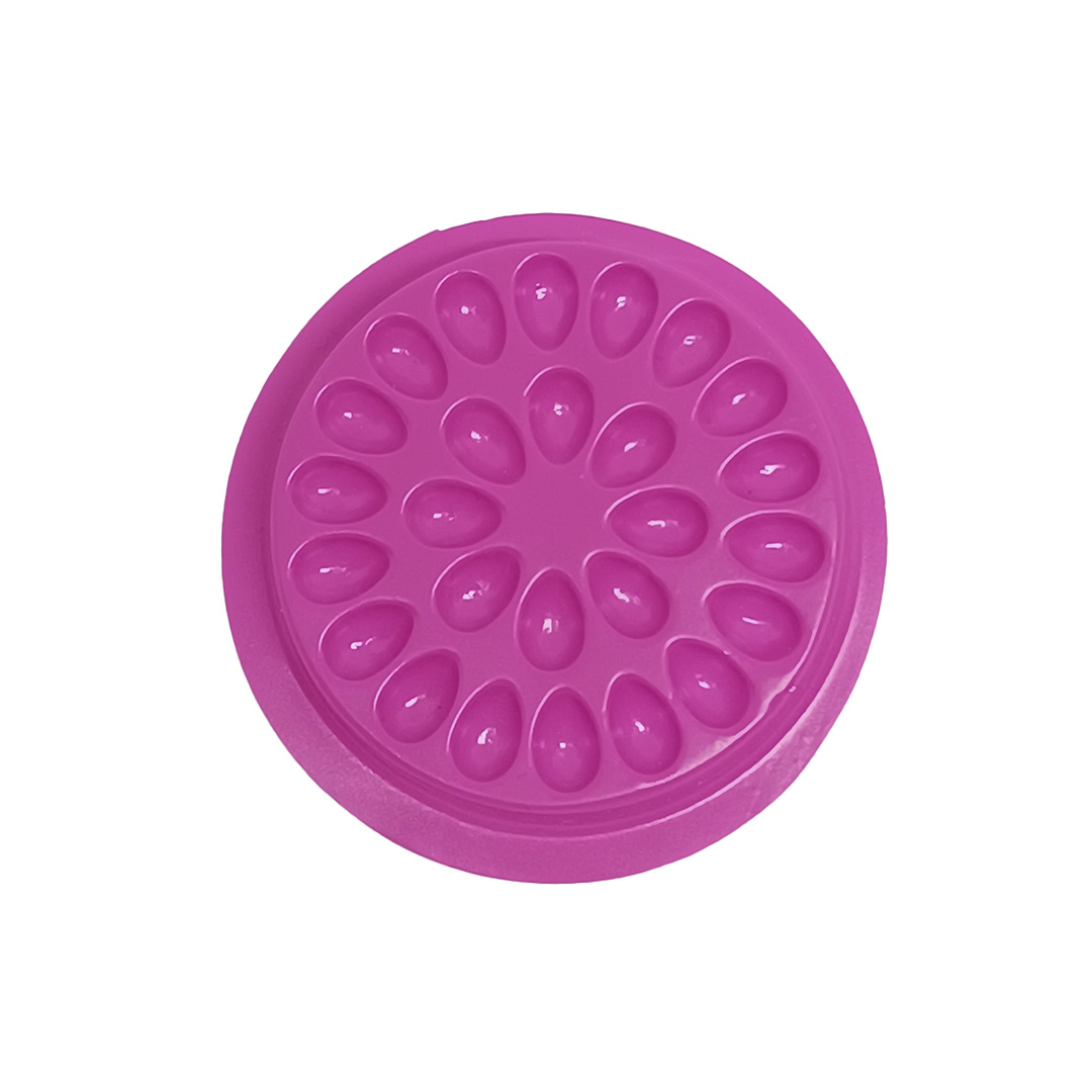 Палетка для клею - аксесуар для зручного дозування та використання клею під час нарощування вій. Палетка має 26 лунок для крапель клею, форма яких перешкоджає загустінню клею та зменшує його витрату. Виготовлена з якісного пластику.