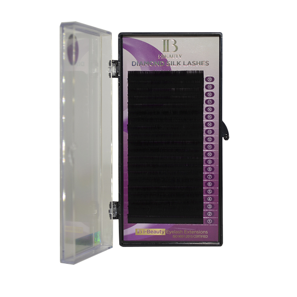Шовкові вії i-BEAUTY Diamond Silk - вії з легким блиском шовку, насичено чорного кольору, середньої жорсткості. Заявлена товщина займає 3/4 довжини вії з поступовим звуженням до кінчика. Виготовлені з гіпоалергенного синтетичного волокна BPT, не заламуються і не деформуються під впливом сонця або вологи. Вії всі рівні, добре і чітко зафіксовані на стрічці.