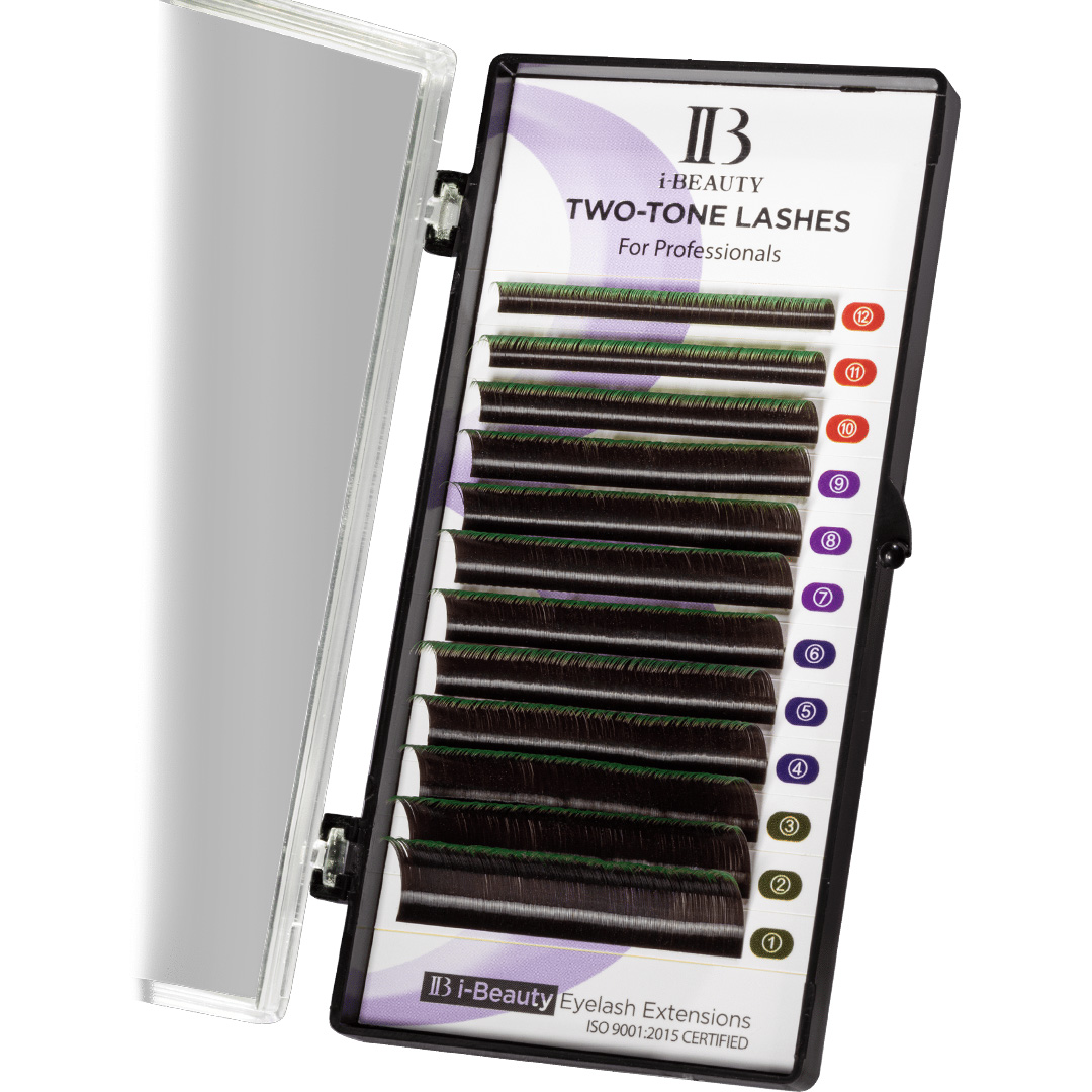 Вії I-BEAUTY Два тони – вії чорні біля основи і зелені на кінчиках. З їхньою допомогою можна створити надзвичайно виразний ефект при нарощуванні вій. Виглядають креативно і вишукано, при світлі додають погляду мерехтіння. Насичені кольори, якісний матеріал та близька до натуральної текстура.